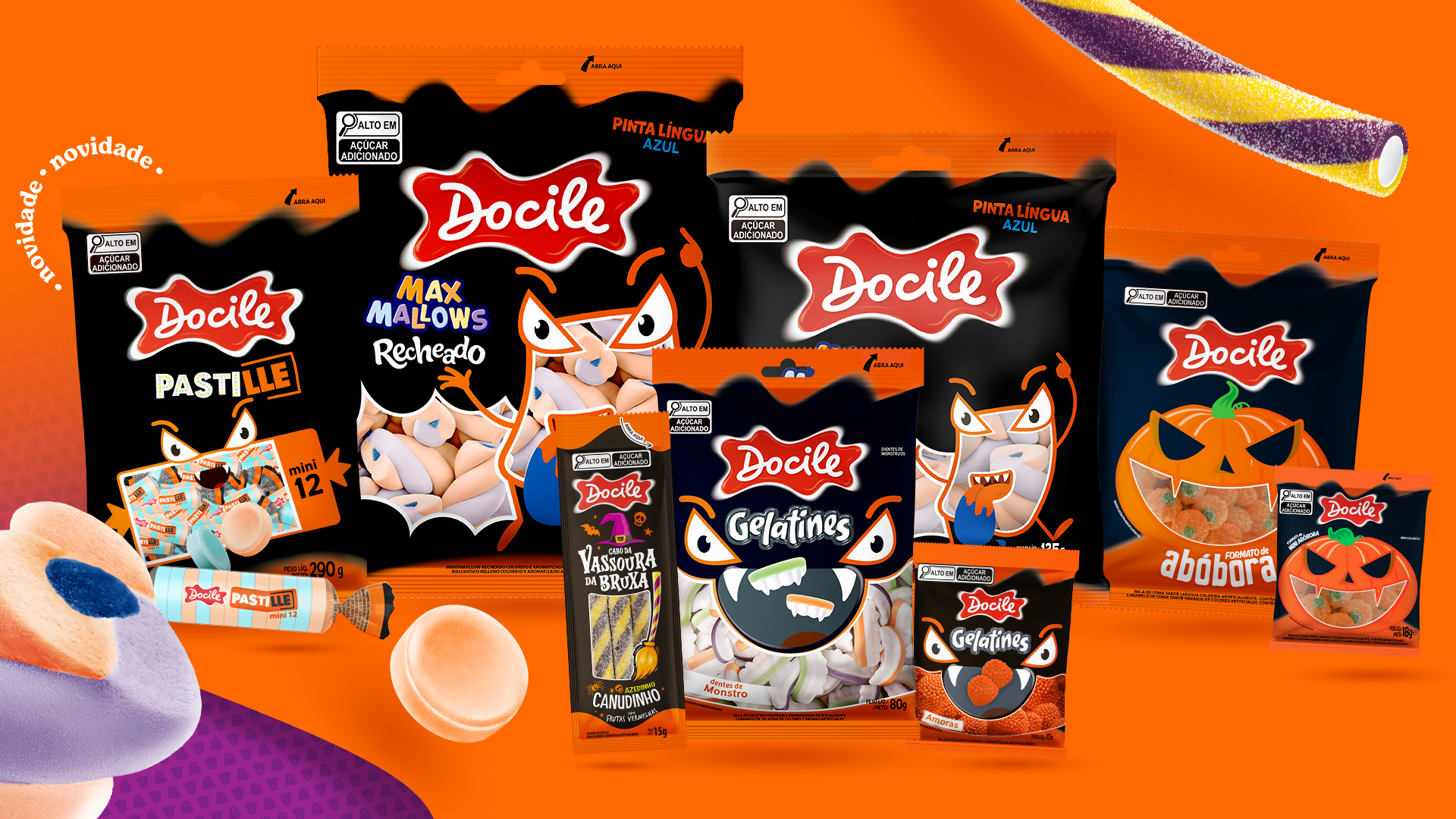 O Halloween, celebrado no final de outubro, é mais uma oportunidade de potencializar as vendas a partir das ativações de loja e decorações temáticas. Por isso, além de uma linha dedicada a esta data, incluindo diferentes categorias, a Docile dá esse suporte para o varejista ambientar o PDV.