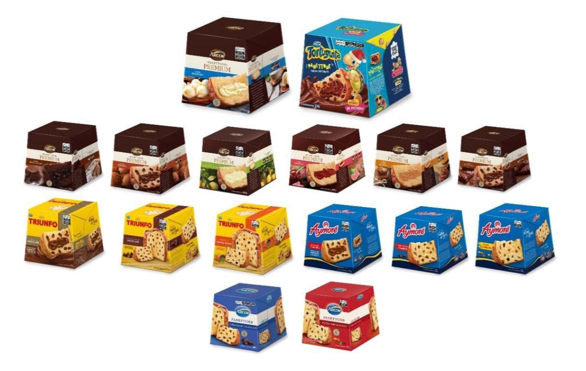 A Arcor trouxe como principal lançamento o panetone sabor beijinho, além de opções como petit gâteau e limão siciliano. A comunicação da empresa aposta em mostrar novas formas de consumo.
