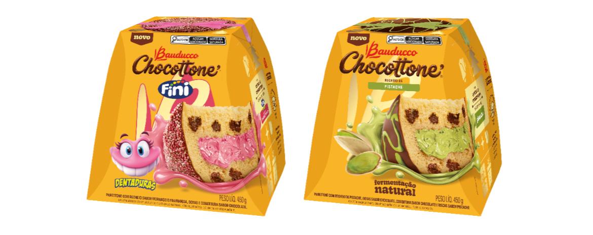 A Bauducco trouxe novos recheados, como o Chocottone Pistache e versões em parceria com a Fini. Também aposta em embalagens de 908g e nos formatos individuais de 80g.