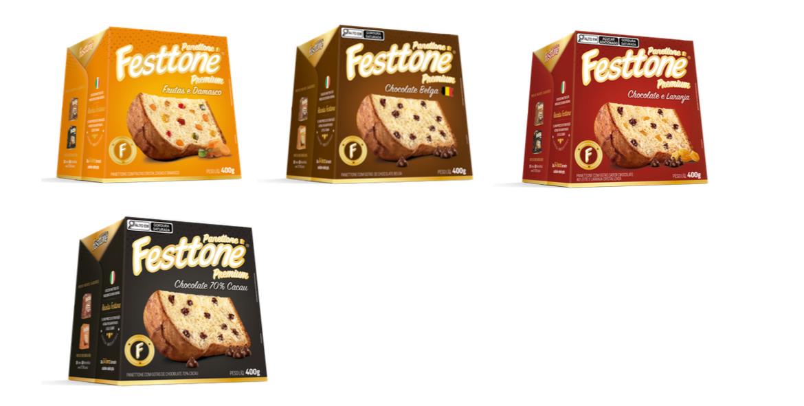 A Festtone apresentou panetones premium em sabores como chocolate com laranja e chocolate belga. A marca busca incentivar o consumo diário. “Temos a ideia de Festtone todo dia, tirando o foco da sazonalidade. Chegamos a criar receitas como sopa de cebola com panetone, para mostrar outras formas de uso”, destacou a empresa.