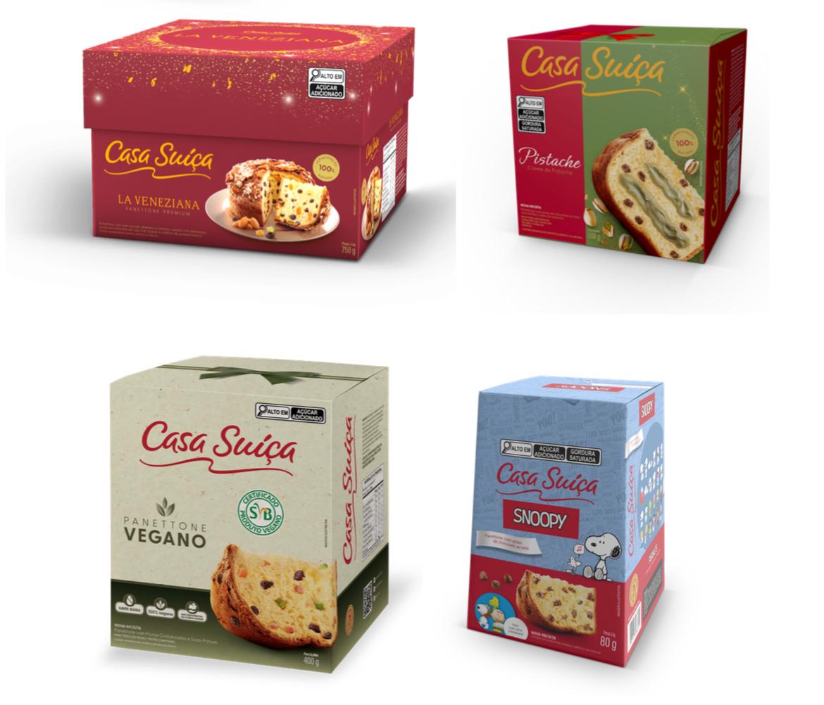 A Casa Suíça, marca do Grupo Marilan, apresentou o Panettone La Veneziana, premiado em design de embalagem, além de opções de pistache e vegana, certificada pela Sociedade Vegetariana Brasileira. O portfólio inclui ainda o Mini Snoopy colecionável.