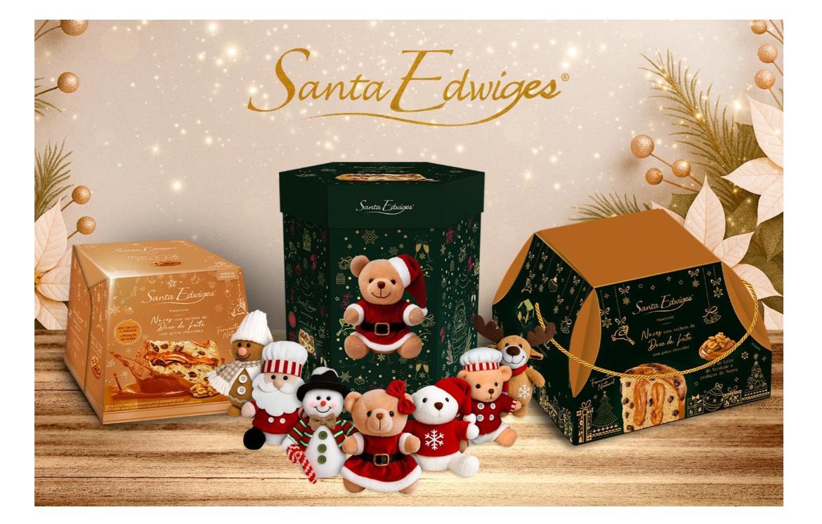 A Santa Edwiges ampliou a linha com versões recheadas de doce de leite e nozes e panetones acompanhados de pelúcias.