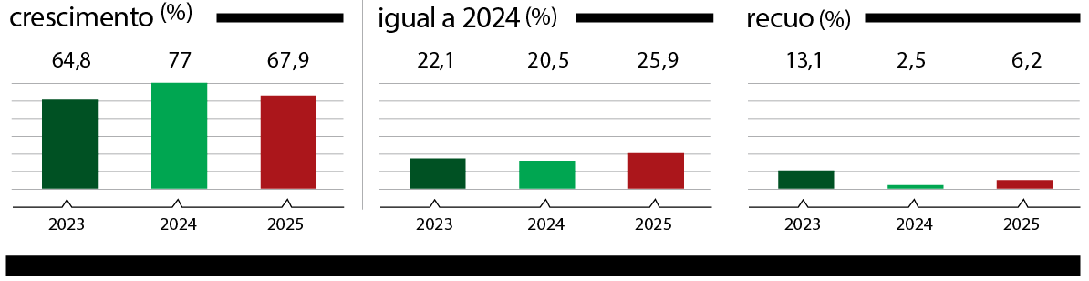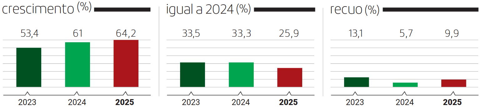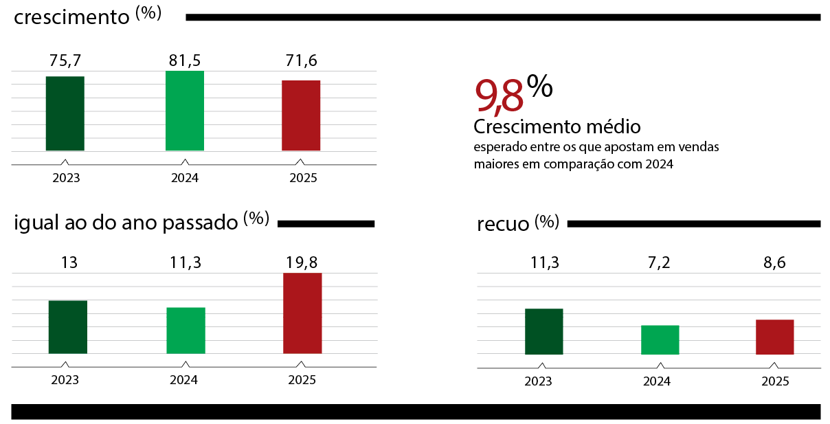 O percentual de varejistas que esperam aumento de vendas para o Natal e o Ano Novo de 2025 bateu em 71,6%, de acordo com o levantamento feito pela SA+, realizado com cerca de 80 varejistas de todo o País.