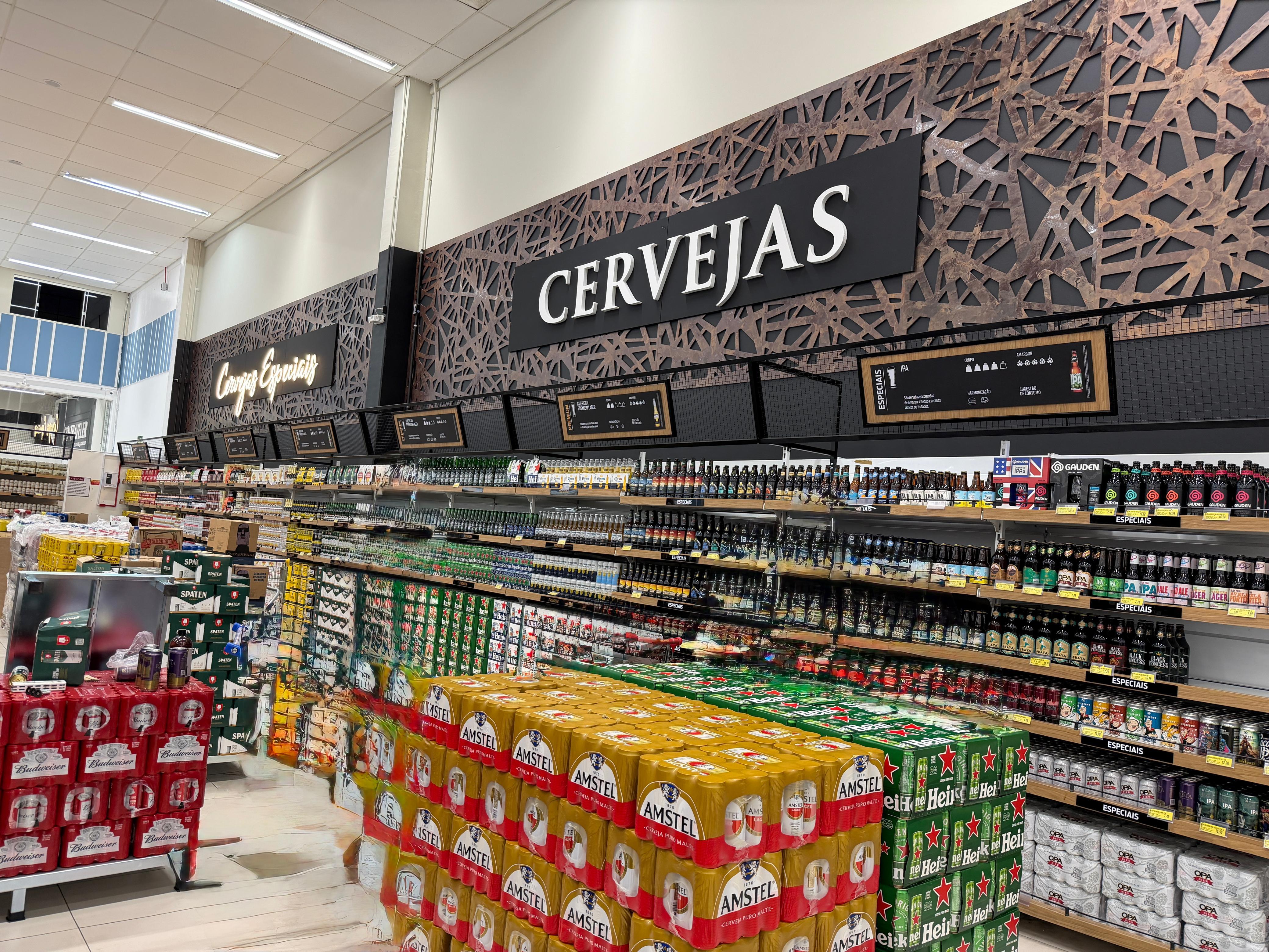 A unidade recebeu nova sinalização e comunicação visual planejada para orientar o consumidor. O hipermercado incorpora circuito de Retail Media, com painéis de LED instalados em áreas de grande circulação, integrando estratégias digitais próprias e de parceiros.