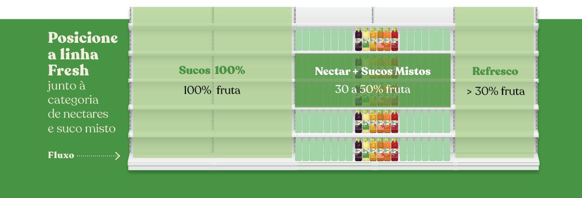 Com um preço justo, a linha Fresh representa uma excelente oportunidade de atrair novos shoppers para a categoria de néctares e bebidas mistas, na qual deve ser posicionada no ponto de venda.